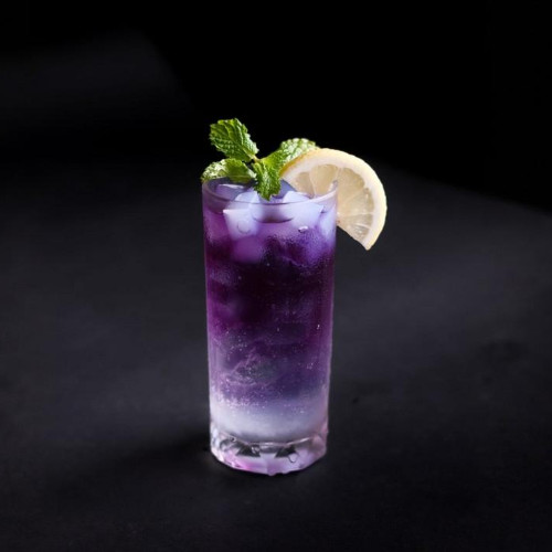 Purple Lemonade. Lychee syrup, Telang flower, Lime juice, Nata de coco, Soda water Rp 58.000 Available - +