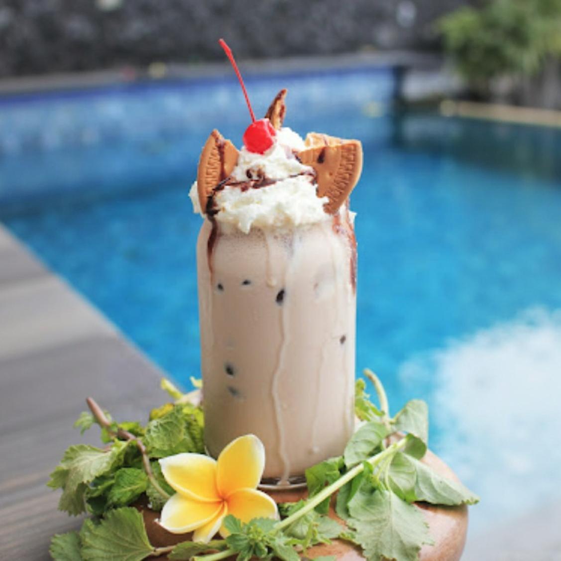 Ovaltine, Regal biscuit, Vanilla ice cream, and Fresh milk